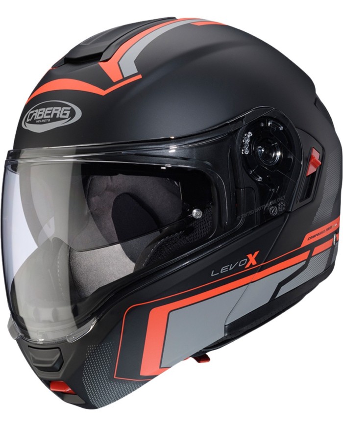 Le LEVO X est le casque modulable de Caberg au design innovant et aux solutions techniques de pointe, développé pour les motards touring les plus exigeants. La coque est en fibre de verre, tandis que la version LEVO X CARBON est entièrement en carbone. Deux tailles de coque garantissent le meilleur ajustement entre le volume du casque et la taille de la tête du pilote.