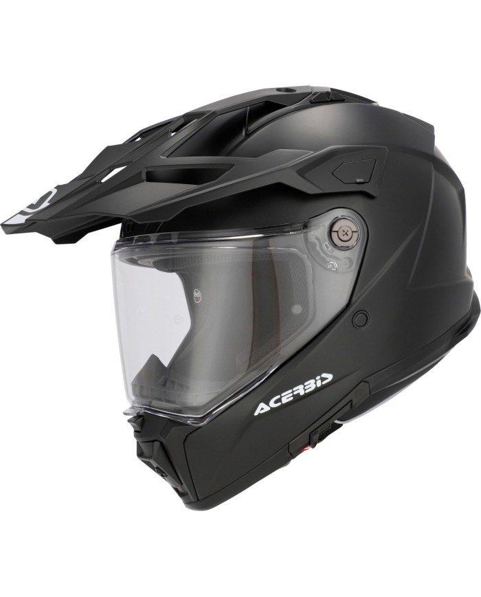 La visière panoramique, traitée avec un revêtement anti-rayures et anti-buée, offre un champ de vision large et clair grâce à la possibilité d'insérer PINLOCK, améliorant ainsi la sécurité sur et hors route. Le casque dispose également d'une doublure intérieure entièrement amovible et lavable en tissu hypoallergénique et respirant, pour garantir un confort durable même lors des trajets les plus exigeants. Le système de fermeture à double anneau assure une sécurité maximale.