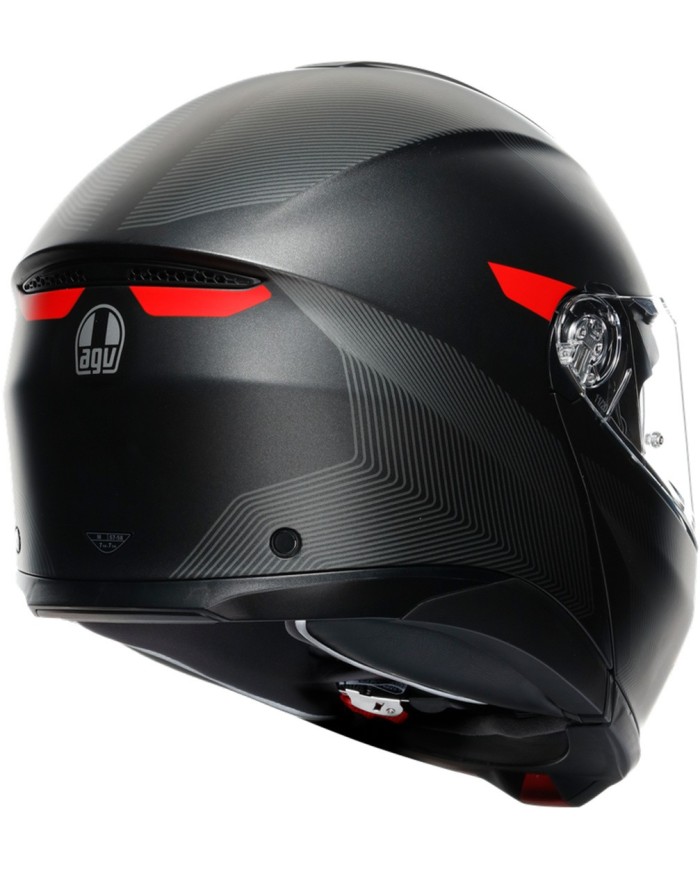 L?aérodynamique du casque est optimisée même en configuration ouverte. L?AGV Tourmodular peut être utilisé avec la mentonnière relevée même en déplacement en toute sécurité, dépassant les normes requises par l?homologation spécifique P/J.