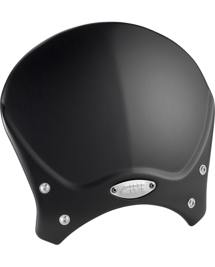 Bulle universelle pour roadster ?naked? avec un style moderne/classique qui reproduit parfaitement le look ?race cafe?, pour qui elle a été spécifiquement designée. Elle est réalisée en aluminium satiné et anodisé, d?épaisseur 2mm, pour résister aux intempéries. Pure, légère et technique , il n?y a aucun composant en plastique. Etiquette rivetée avec le logo Givi en aluminium anodisé couleur bronze.