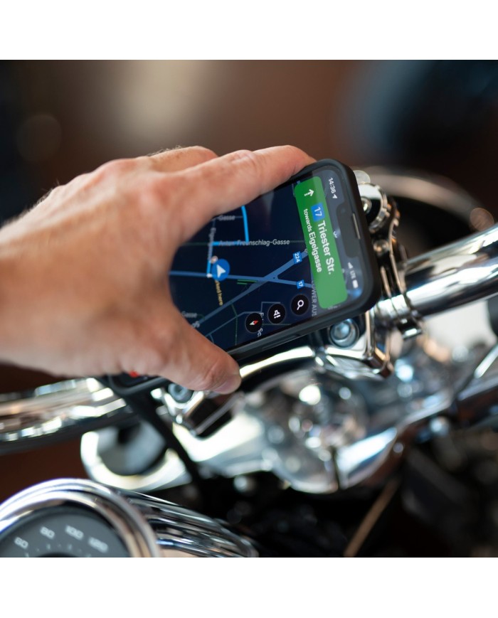 Que ce soit en mode paysage ou portrait, c'est à vous de choisir. Utilisez votre smartphone lors de vos sorties à moto, par exemple pour la navigation, et gardez toujours un ?il sur votre trajet. Maximalement sécurisé et incroyablement pratique.