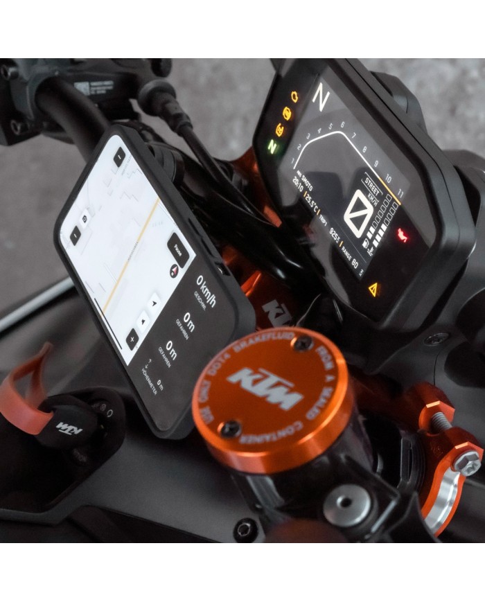 C'est toi qui décides si le format est horizontal ou vertical. Utilise ton smartphone lors de tes sorties à moto, par exemple pour la navigation, et garde à tout moment un ?il sur le parcours. Maximum de sécurité et simplement pratique.