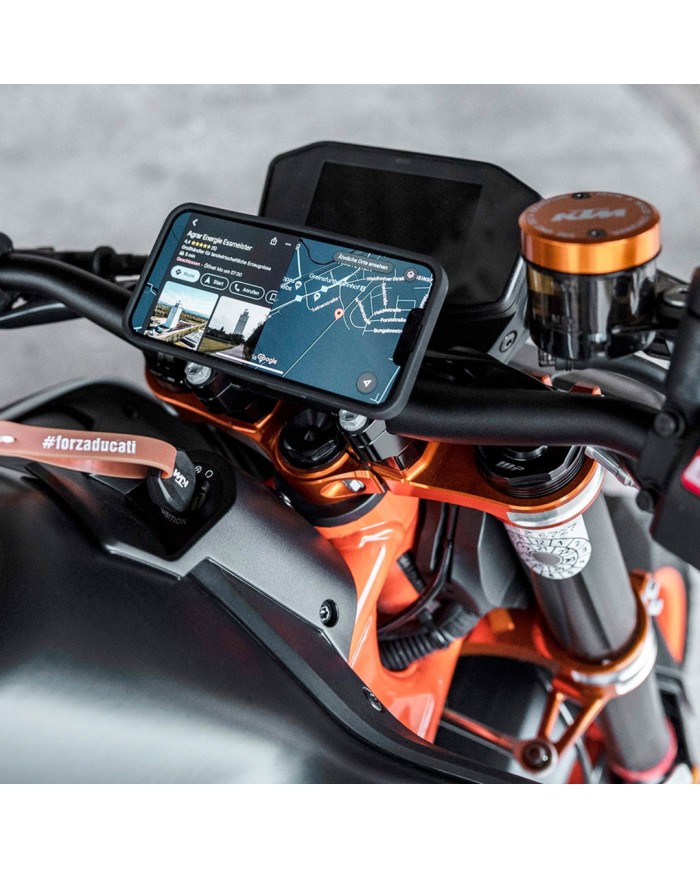 Intuitif et ultra-robuste : le SP ConnectTM Moto Mount Pro est une solution de montage de smartphone de haute qualité pour votre guidon. Le Moto Mount Pro peut être monté sur des guidons standard ou oversize d'un diamètre de 2,22 / 2,54 / 2,86 / 3,17 cm ou 0,875 / 1,0 / 1,125 / 1,25 pouces et peut être réglé de manière flexible à 360°. Ton téléphone portable est ainsi positionné de manière optimale dans ton champ de vision.