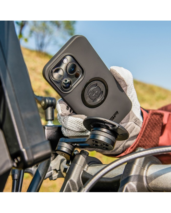 Mag-Align est un système d'alignement intuitif qui veille à ce que ton smartphone se positionne de manière optimale sur ton montage SP Connect préféré. Un anneau magnétique concu avec précision entoure l'interface de montage et guide sans effort ton smartphone vers notre mécanisme breveté Twist-to-Lock. Cela rend la fixation de ton appareil encore plus facile et plus sûre, quelles que soient les circonstances.