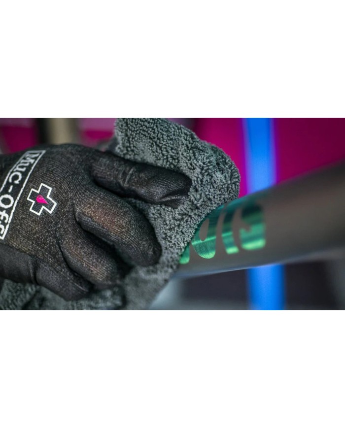 Un chiffon microfibre pour une finition délicate. La technologie des fibres chenilles augmente la surface d?absorption et élimine les salissures et les défauts. Cette microfibre désagrège la saleté en de minuscules particules qui sont gardées dans les fibres du tissu. Laisse la surface parfaitementpropre et brillante. Idéal pour appliquer un polish ou sécher et essuyer votre moto après lavage sans la rayer.
