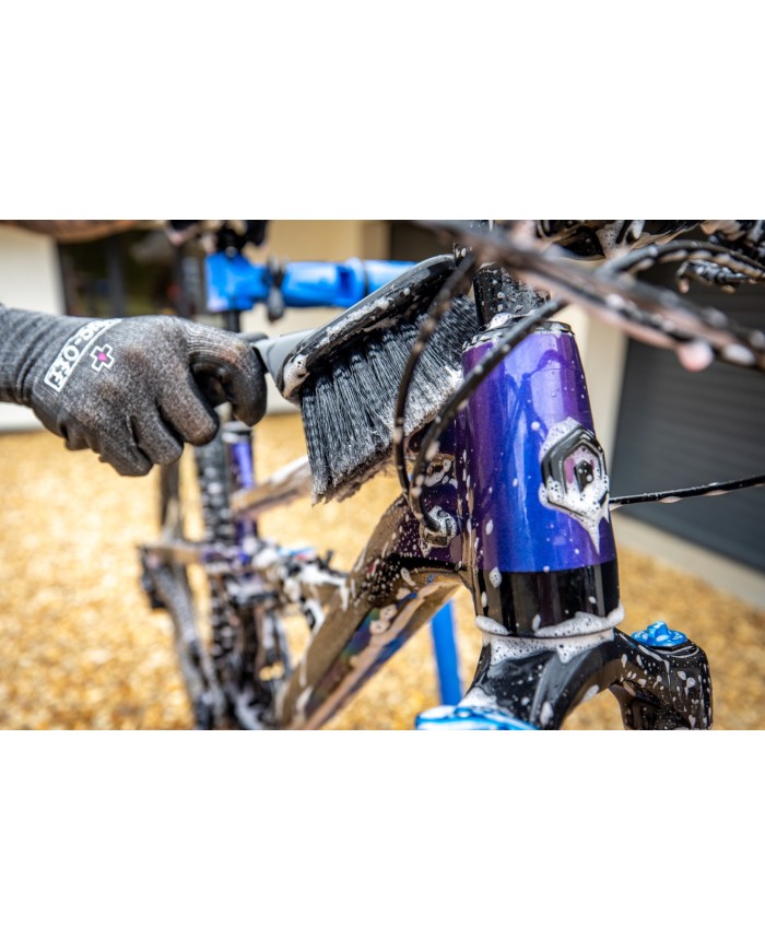 Avec les brosses Muc-Off de haute qualité, tu peux même traiter les zones difficiles d'accès en toute simplicité. Grâce aux poils durables ainsi qu'aux poignées et bords en caoutchouc, la saleté tenace n'a plus aucune chance. Il existe une brosse adaptée à chaque utilisation! Domaine d'application: cadres, accessoires, grandes surfaces.
