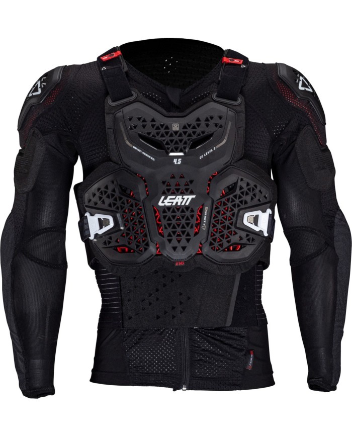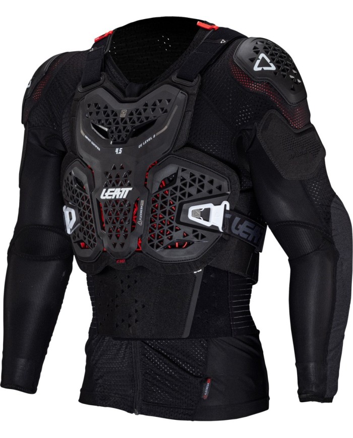 Score total de protection Leatt® de 24 points NOUVEAU modèle 19% plus léger NOUVEAU 50% plus aéré Par rapport à l'ancien Body Protector 5.5 (jusqu'en 2023) Coque rigide et armure ventilée FlexMesh Pro Protection contre les chocs testée et certifiée CE: Poitrine EN1621-3 Level 2 Dorsal EN1621-2 Level 2 Coude et épaule EN1621-1 Niveau 1 La conception 3D assure un ajustement parfait Conception articulée multicouche et multiplaque pour plus de confort Les panneaux de flancs rigides réglables assurent la protection des côtes et des flancs. Panneau arrière étendu pour une couverture supplémentaire Ceinture de reins à hauteur réglable pour épouser parfaitement la forme du corps La construction de la protection et des panneaux en mesh permet une ventilation maximale Gaine de compression séparée anti-odeur, modulaire, à fermeture éclair centrale avec protection intégrée du coude et de l'épaule, concue pour une circulation d'air et une évaporation maximales et un confort idéal Panneaux amovibles à l'avant et à l'arrière et nouveau système BraceOn? plus fin permettant d'ajuster la minerve Leatt® au-dessus et en dessous de la chemise Certifié FFM ? Fédération francaise de motocyclisme Évaluation ISR Poids: 2,40 kg/5,29 lbs Emballage sans plastique