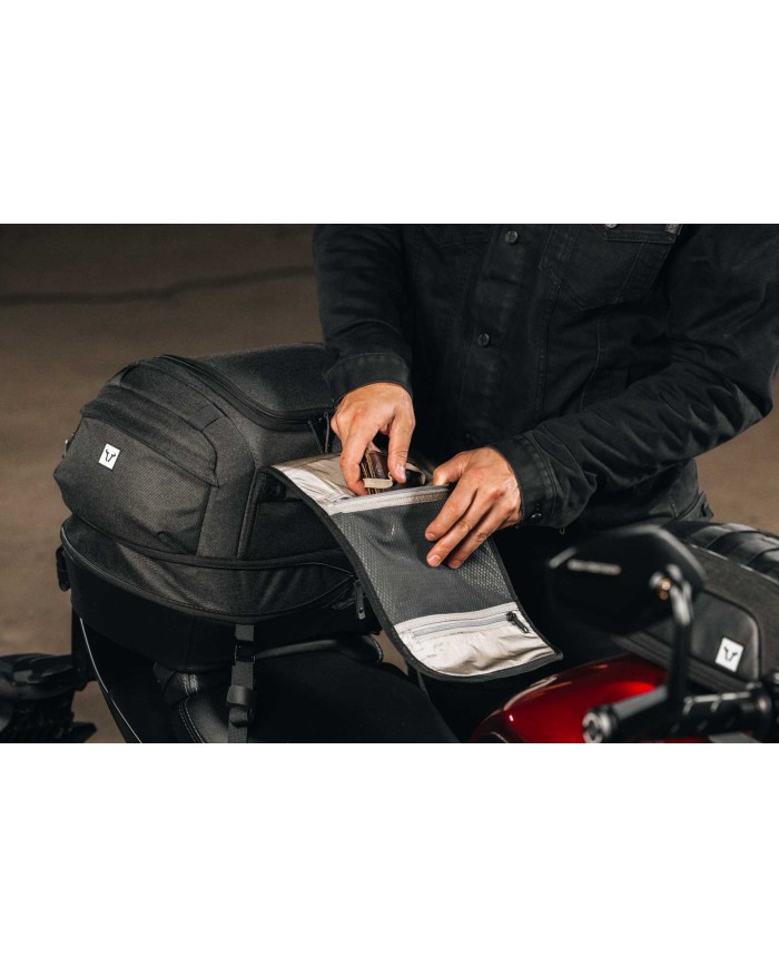 \nLa nouvelle sacoche arrière Legend Gear LR4 élargit le portefeuille de SW-MOTECH avec une nouvelle taille et est le parfait polyvalent pour tous ceux qui recherchent style et fonctionnalité. Que ce soit pour le trajet quotidien, une longue excursion d'une journée ou un voyage de plusieurs jours, la LR4 offre beaucoup d'espace de rangement tout en restant suffisamment compacte pour se loger discrètement à l'arrière de la moto. Grâce à sa forme universelle avec un fond légèrement incurvé, elle s'adapte à de nombreuses motos, qu'il s'agisse de Naked Bikes, de machines de tourisme ou d'enduros de voyage. Le design du couvercle superposé te permet d'accéder rapidement à tes bagages à tout moment et offre des poches en filet supplémentaires pour les petits accessoires de voyage.
