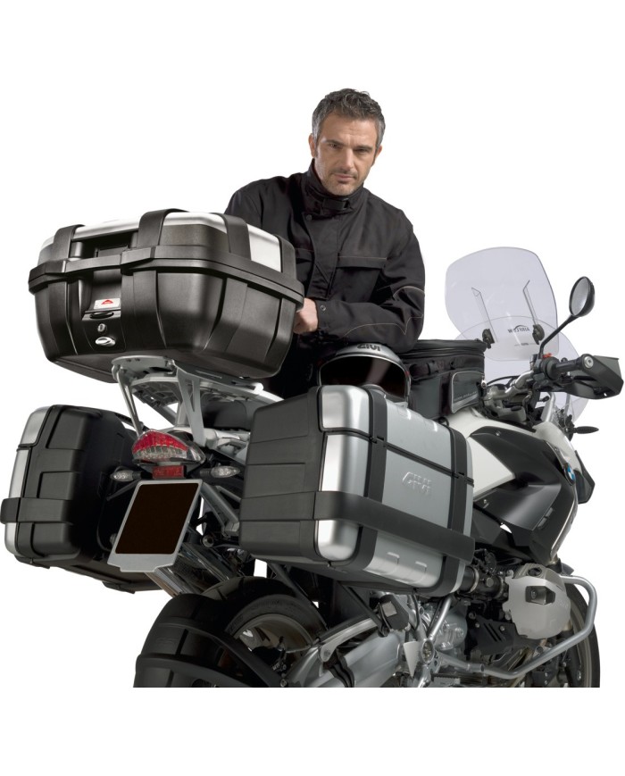 Grand top-case avec système de fixation Monokey complètant la gamme Trekker. Il permet le rangement de deux casques modulables. Fabriqué en polymères renforcés avec fibres de verre, il possède une haute rigidité structurelle.