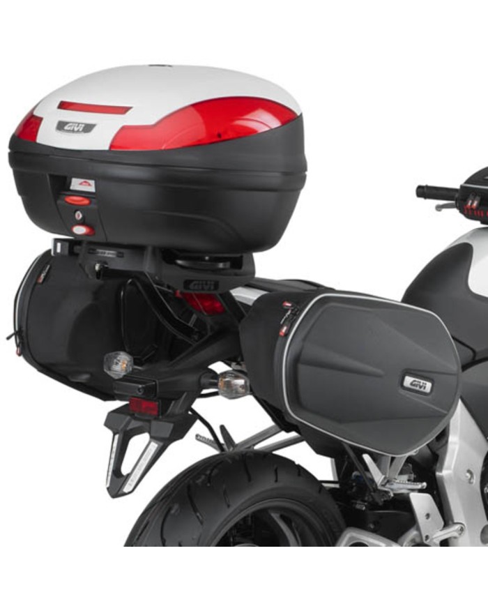 Supports en tube d´acier pour sacoches souples.Pour un montage sûr et stable des sacoches universelles, GIVI a développé des tubes d´acier spécifiques pour différents modèles de motos. Le montage de ces supports garantit une fixation parfaite des sacoches et évite ainsi les dommages désagréables qui pourraient être causés par l´échappement. Les sacs du système Easylock, peuvent être fixés directement avec une fermeture rapide.