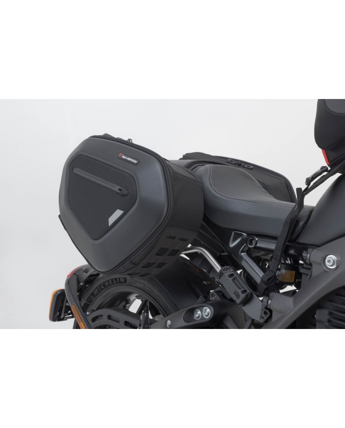 \r\nLes sacoches PRO BLAZE avec entretoises amovibles se distinguent par leur look sportif, leur légèreté et un système de fixation astucieux. SW-MOTECH fabrique les sacs en nylon balistique 1680D robuste et particulièrement résistant aux UV. En combinaison avec des parois latérales en matériau EVA stable, les bagages sont protégés contre les éclaboussures et la poussière. Développées spécifiquement pour les motos sportives, les sacoches n'affectent que très peu les caractéristiques de conduite. Ceux qui voyagent sans bagages peuvent retirer les entretoises d'un simple geste et seules des fixations discrètes restent sur la machine.