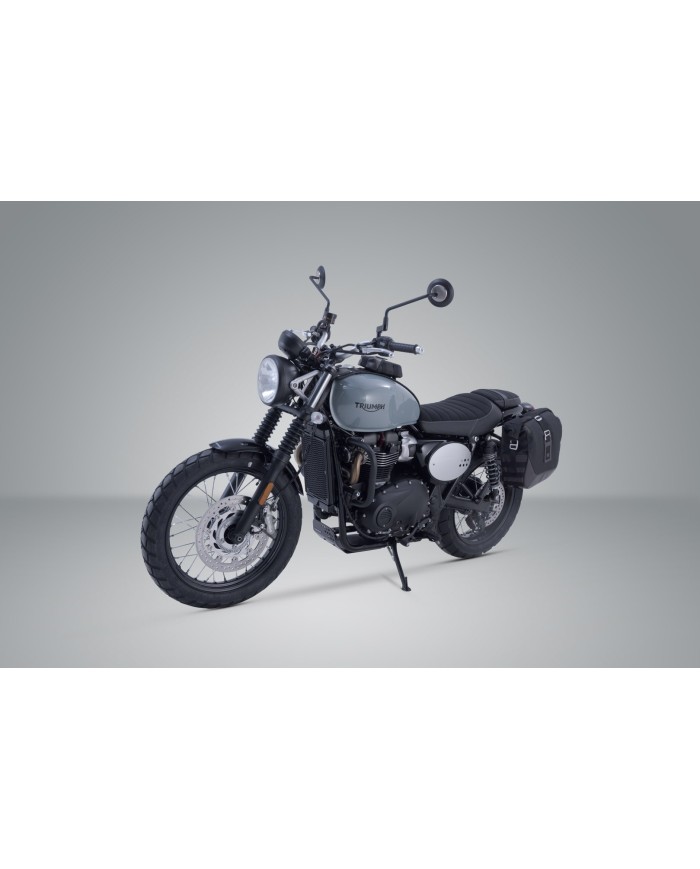 Le système de sacoches latérales comprend le support latéral SLC approprié ainsi qu'une sacoche latérale LC2 Legend Gear.