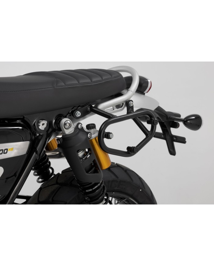 Le système de sacoches latérales comprend le support latéral SLC approprié ainsi qu'une sacoche latérale LC2 Legend Gear.