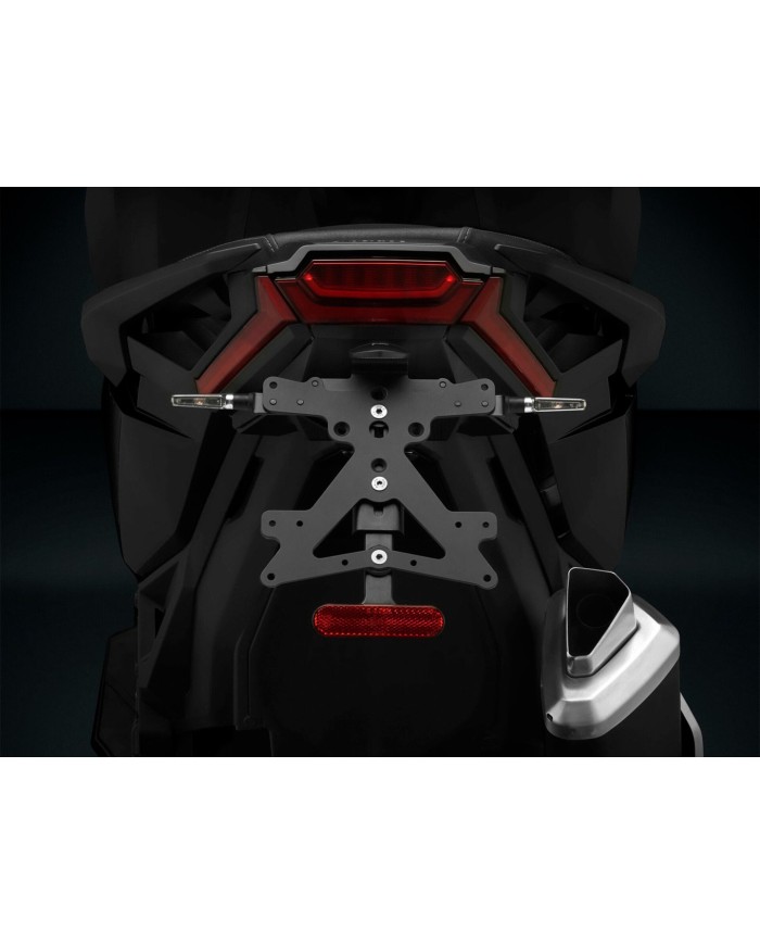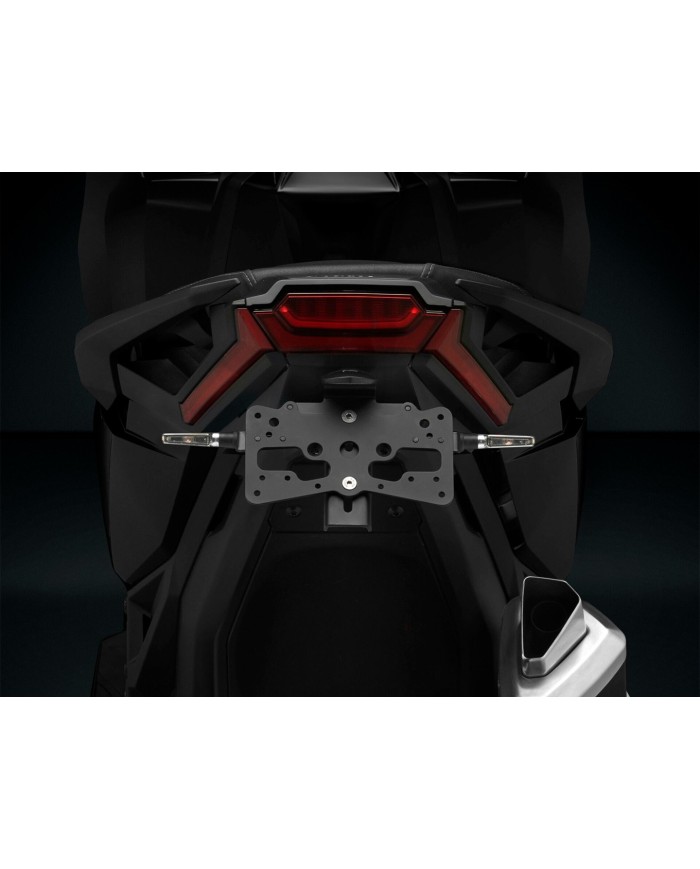 Le support de plaque d'immatriculation Fox en aluminium est spécialement concu pour chaque modèle de moto. Cela lui permet non seulement de s'adapter parfaitement aux lignes de la moto, mais aussi de se distinguer par une installation simple et rapide. Chaque kit contient toutes les pièces de montage nécessaires, sans qu'il soit nécessaire de modifier les pièces OEM. Fonctionnalité maximale dans un espace réduit et respect des normes d'homologation. Les kits Fox comprennent un éclairage de plaque d'immatriculation à LED SMD, un réflecteur et des adaptateurs pour clignotants Rizoma, sont réglables et équipés d'un dispositif de verrouillage pour fixer l'inclinaison correcte.