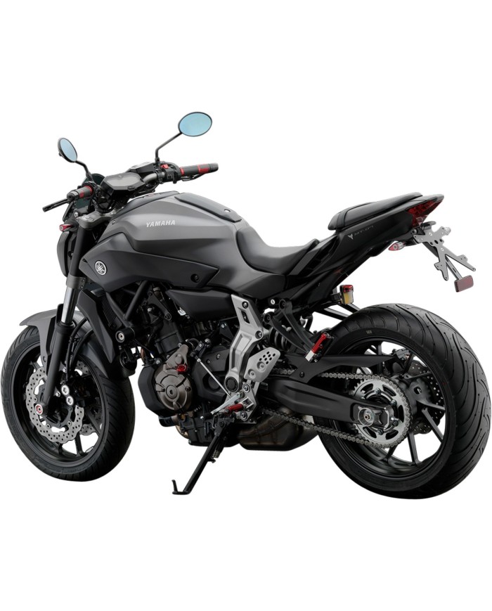Le support de plaque d'immatriculation Fox en aluminium est spécialement concu pour chaque modèle de moto. Cela lui permet non seulement de s'adapter parfaitement aux lignes de la moto, mais aussi de se distinguer par une installation simple et rapide. Chaque kit contient toutes les pièces de montage nécessaires, sans qu'il soit nécessaire de modifier les pièces OEM. Fonctionnalité maximale dans un espace réduit et respect des normes d'homologation. Les kits Fox comprennent un éclairage de plaque d'immatriculation à LED SMD, un réflecteur et des adaptateurs pour clignotants Rizoma, sont réglables et équipés d'un dispositif de verrouillage pour fixer l'inclinaison correcte.