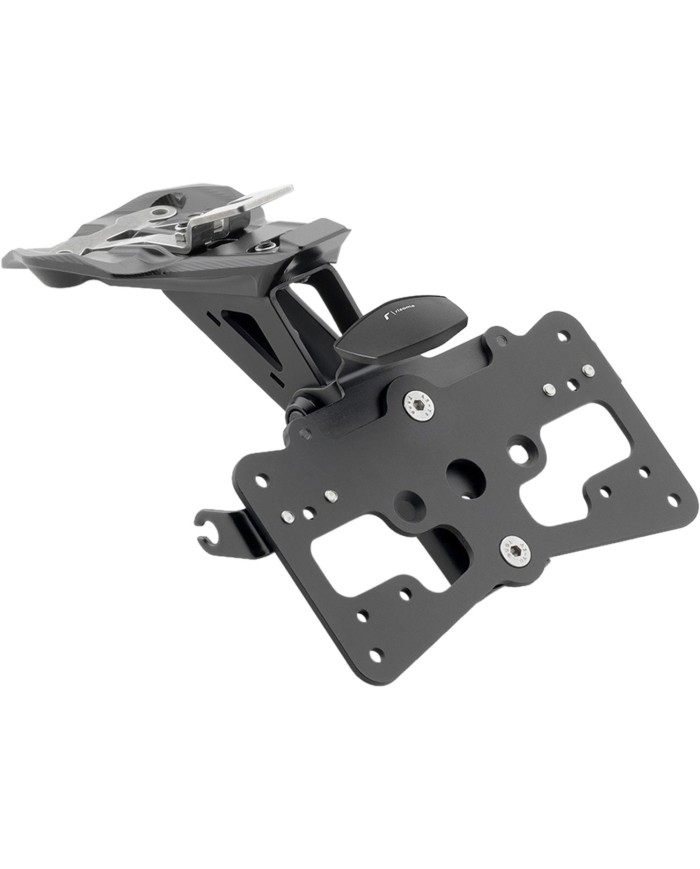 Le support de plaque d'immatriculation Fox en aluminium est spécialement concu pour chaque modèle de moto. Cela lui permet non seulement de s'adapter parfaitement aux lignes de la moto, mais aussi de se distinguer par une installation simple et rapide. Chaque kit contient toutes les pièces de montage nécessaires, sans qu'il soit nécessaire de modifier les pièces OEM. Fonctionnalité maximale dans un espace réduit et respect des normes d'homologation. Les kits Fox comprennent un éclairage de plaque d'immatriculation à LED SMD, un réflecteur et des adaptateurs pour clignotants Rizoma, sont réglables et équipés d'un dispositif de verrouillage pour fixer l'inclinaison correcte.