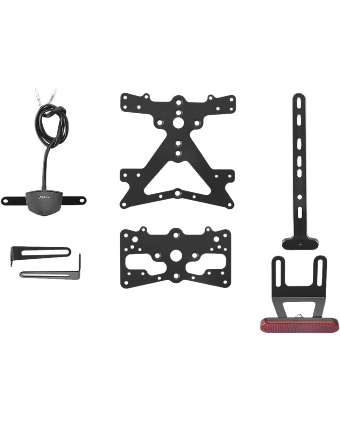 Le support de plaque d'immatriculation Fox en aluminium est spécialement concu pour chaque modèle de moto. Cela lui permet non seulement de s'adapter parfaitement aux lignes de la moto, mais aussi de se distinguer par une installation simple et rapide. Chaque kit contient toutes les pièces de montage nécessaires, sans qu'il soit nécessaire de modifier les pièces OEM. Fonctionnalité maximale dans un espace réduit et respect des normes d'homologation. Les kits Fox comprennent un éclairage de plaque d'immatriculation à LED SMD, un réflecteur et des adaptateurs pour clignotants Rizoma, sont réglables et équipés d'un dispositif de verrouillage pour fixer l'inclinaison correcte.