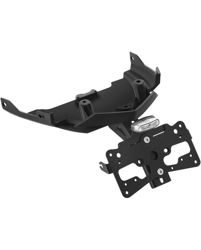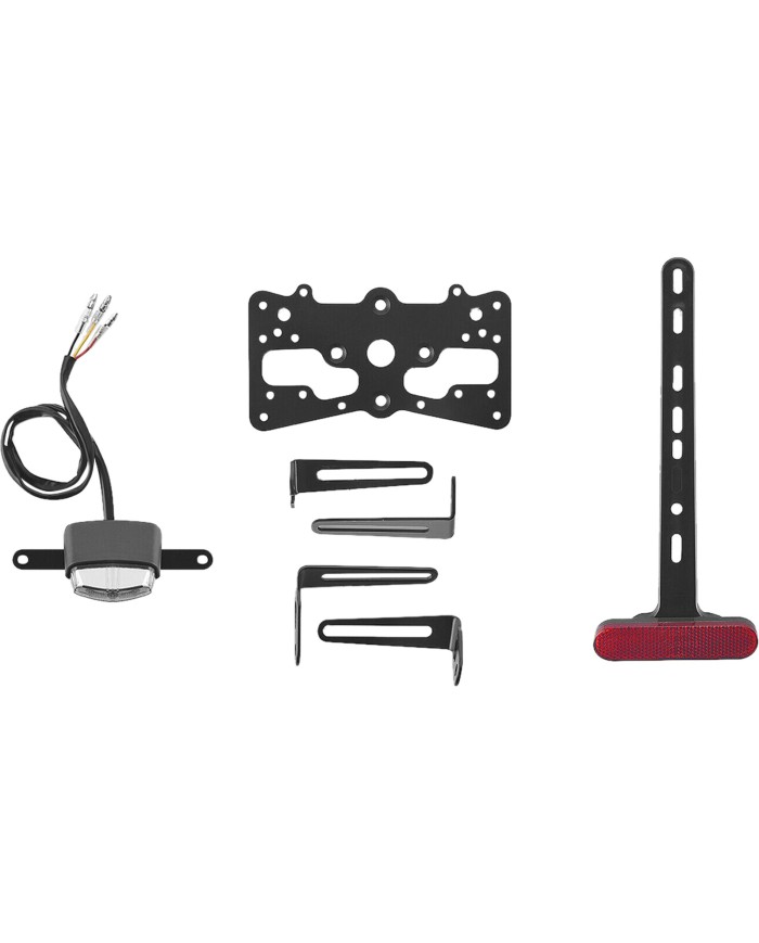 Le support de plaque d'immatriculation Fox en aluminium est spécialement concu pour chaque modèle de moto. Cela lui permet non seulement de s'adapter parfaitement aux lignes de la moto, mais aussi de se distinguer par une installation simple et rapide. Chaque kit contient toutes les pièces de montage nécessaires, sans qu'il soit nécessaire de modifier les pièces OEM. Fonctionnalité maximale dans un espace réduit et respect des normes d'homologation. Les kits Fox comprennent un éclairage de plaque d'immatriculation à LED SMD, un réflecteur et des adaptateurs pour clignotants Rizoma, sont réglables et équipés d'un dispositif de verrouillage pour fixer l'inclinaison correcte.