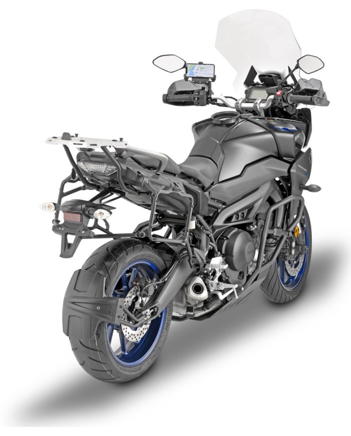 Supporti per bauletti laterali in tubolare d'acciaio facilmente montabili e smontabili grazie al sistema di fissaggio rapido Rapid-Fire. I bauletti V35 non sono compatibili con questo sistema.