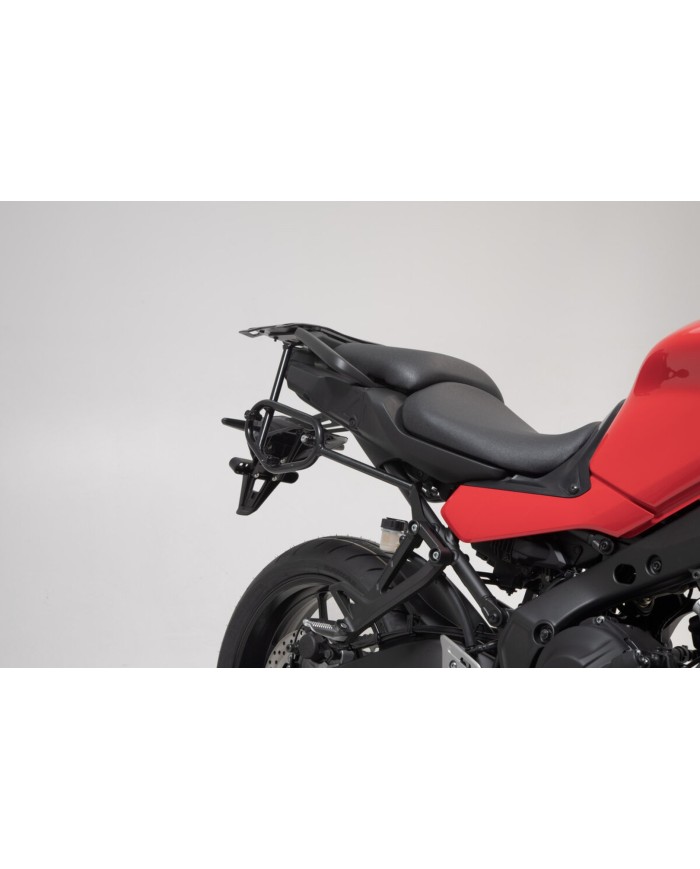Il design preciso e specifico per ogni modello dei supporti laterali consente un montaggio semplice e sicuro sui punti di fissaggio originali del veicolo. Un sistema di chiusura rapida consente di fissare e rimuovere le borse laterali con pochi semplici gesti, senza che il conducente debba rinunciare a un fissaggio affidabile delle borse.
