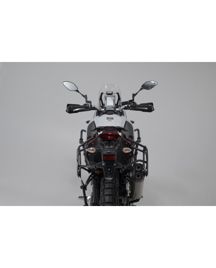 • Per il montaggio delle valigie laterali sul supporto laterale PRO sono necessari kit di adattamento specifici. Questi sono disponibili separatamente per le valigieSW-MOTECHe delle serie TRAX ADV, TRAX ION e AERO ABS, nonché per la SysBag WP L con piastra di adattamento. Sono disponibili separatamente anche kit di adattamento per sistemi di valigie di altri produttori.