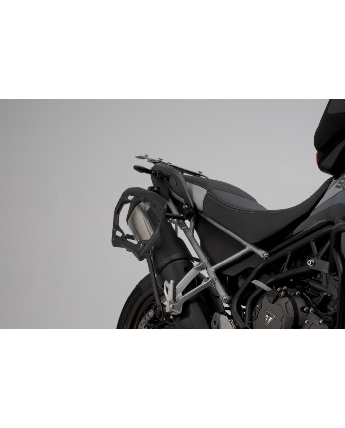 • Per il montaggio delle valigie laterali sul supporto laterale PRO sono necessari kit di adattamento specifici. Questi sono disponibili separatamente per le valigieSW-MOTECHe delle serie TRAX ADV, TRAX ION e AERO ABS, nonché per la SysBag WP L con piastra di adattamento. Sono disponibili separatamente anche kit di adattamento per sistemi di valigie di altri produttori.