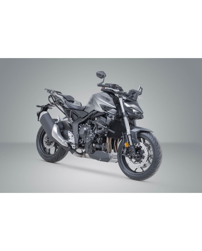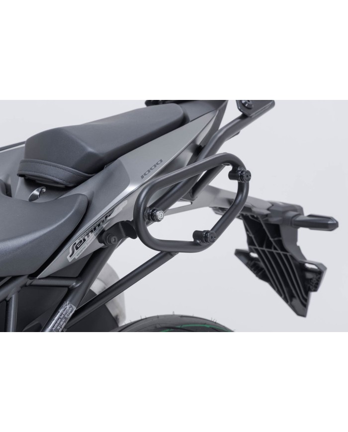 Lo sviluppo preciso e specifico per il modello dei supporti laterali consente un montaggio semplice e sicuro sui punti di fissaggio originali del veicolo. Grazie a un sistema di chiusura rapida, le borse laterali possono essere fissate e rimosse in pochi semplici passaggi, senza che il conducente debba rinunciare a un fissaggio affidabile delle borse. Il supporto SLC offre un fissaggio sicuro per le borse laterali Legend Gear LC1/LC2, le valigie laterali URBAN ABS, le borse SysBag con piastra di adattamento, il fissaggio laterale universale e le piastre con il numero di partenza.