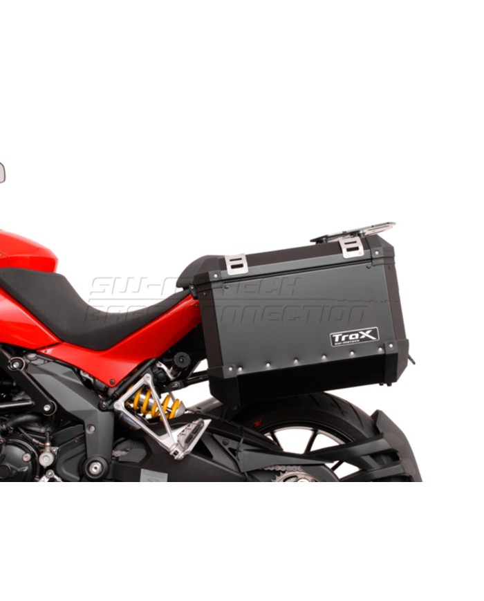 - I portavaligie QUICK-LOCK possono essere utilizzati in coppia per il fissaggio di valigie laterali. Il fissaggio supplementare dell'ALU-RACK e della piastra di adattamento QUICK-LOCK consente di combinare bauletti e valigie laterali.