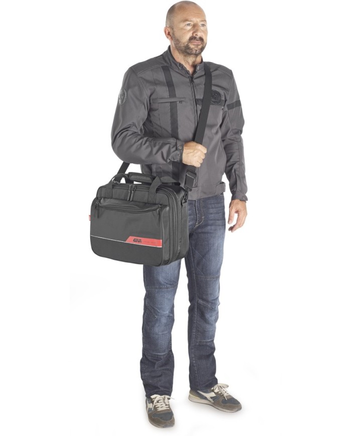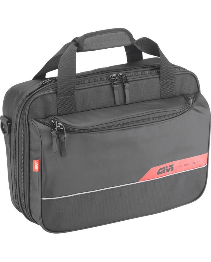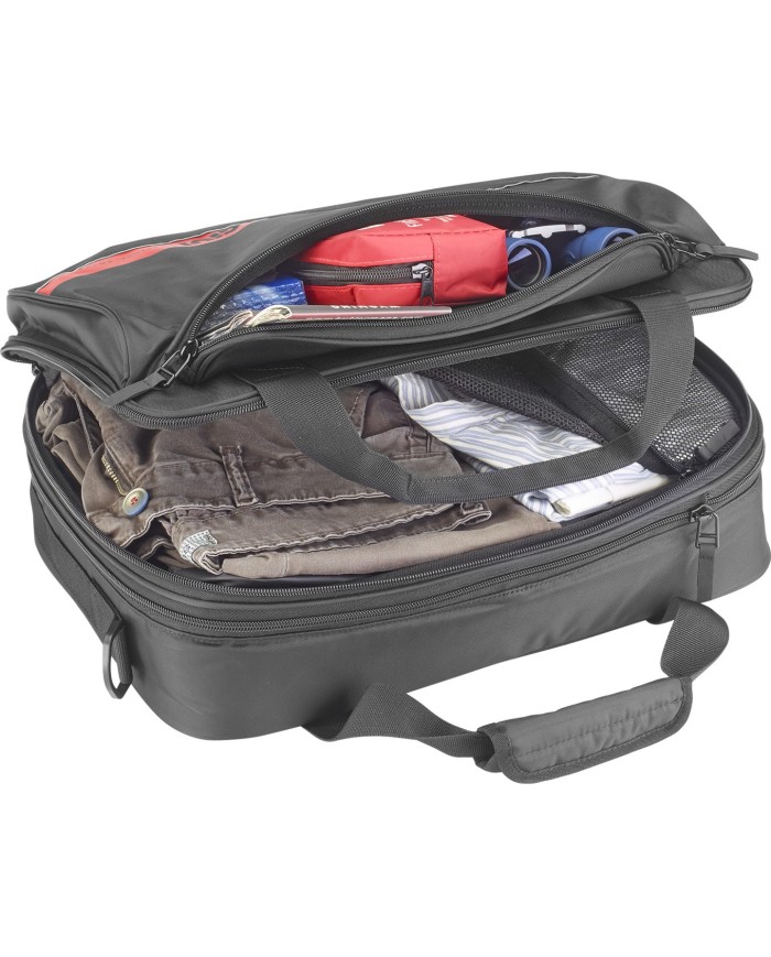 Borsa interna per valigie Trekker TRK33, TRK35 e TRK46, 33 / 46 litri. L'estensione aperta consente di utilizzare la borsa nella valigia TRK46, mentre con l'estensione chiusa la borsa si adatta alle valigie TRK33 e TRK35. La tasca frontale consente di accedere alla borsa quando la valigia è aperta solo nella parte superiore. L'apertura principale è dotata di una rete per mantenere il contenuto della borsa in posizione verticale. Questo modello ha un design sportivo accattivante. Grazie alle pratiche maniglie con velcro imbottito e alla tracolla rimovibile, può essere comodamente utilizzato anche separatamente come borsa.