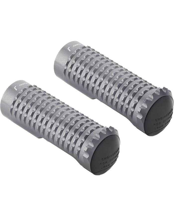 Il design degli Extreme Pegs si ispira all'esperienza di gara delRizoma. Si distinguono per la combinazione di alluminio e Nylon®, due materiali leggeri e resistenti. L'alluminio lavorato viene lavorato con una tecnica CNC ad alta precisione per creare una texture ampia, progettata per prevenire la perdita di aderenza indipendentemente dallo stile di guida. La parte esterna del poggiapiedi è stata sviluppata per spingere il pilota al limite, offrendo un pattino sostituibile in Nylon® che riduce i danni in caso di leggero contatto con il suolo. Disponibile in diversi colori, grazie a un processo di anodizzazione che offre una migliore protezione della superficie e una maggiore durata.