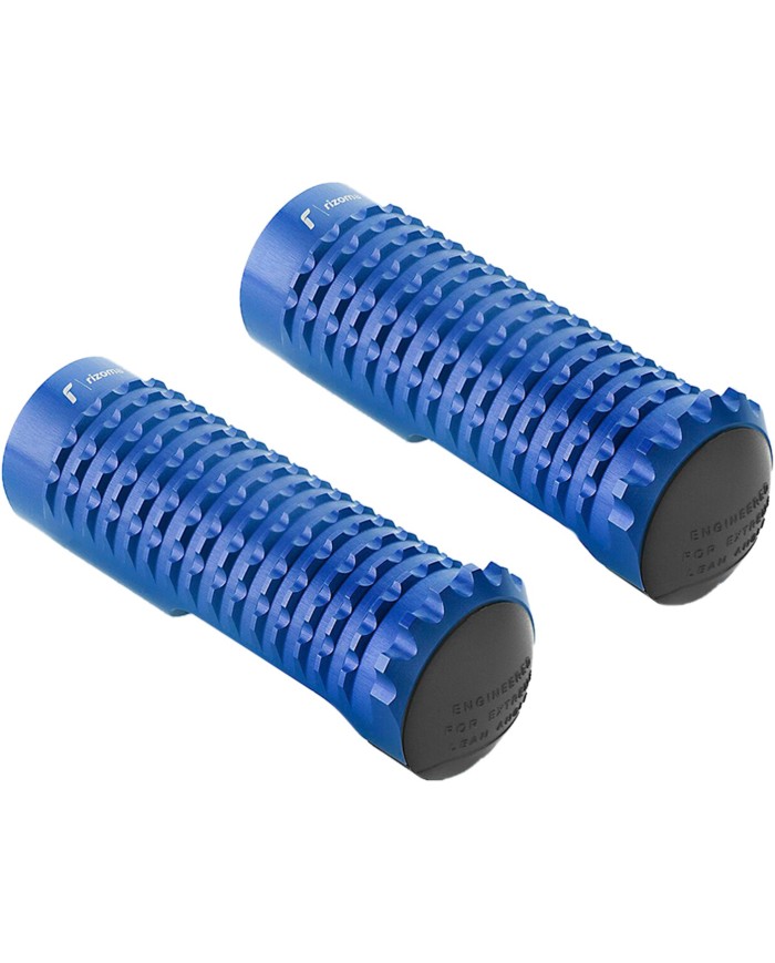 Il design degli Extreme Pegs si ispira all'esperienza di gara delRizoma. Si distinguono per la combinazione di alluminio e Nylon®, due materiali leggeri e resistenti. L'alluminio lavorato viene lavorato con una tecnica CNC ad alta precisione per creare una texture ampia, progettata per prevenire la perdita di aderenza indipendentemente dallo stile di guida. La parte esterna del poggiapiedi è stata sviluppata per spingere il pilota al limite, offrendo un pattino sostituibile in Nylon® che riduce i danni in caso di leggero contatto con il suolo. Disponibile in diversi colori, grazie a un processo di anodizzazione che offre una migliore protezione della superficie e una maggiore durata.
