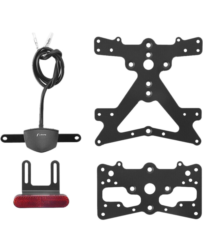 Il supporto targa Fox in alluminio è progettato appositamente per ogni modello di moto. Ciò gli consente non solo di adattarsi perfettamente alle linee della moto, ma anche di distinguersi per la sua installazione semplice e veloce. Ogni kit contiene tutti i componenti necessari per il montaggio, senza necessità di modificare i componenti OEM. Massima funzionalità in uno spazio ridotto e rispetto delle norme di omologazione. I kit Fox includono un'illuminazione della targa a LED SMD, un riflettore e sono regolabili con un dispositivo di bloccaggio per fissare la corretta inclinazione.