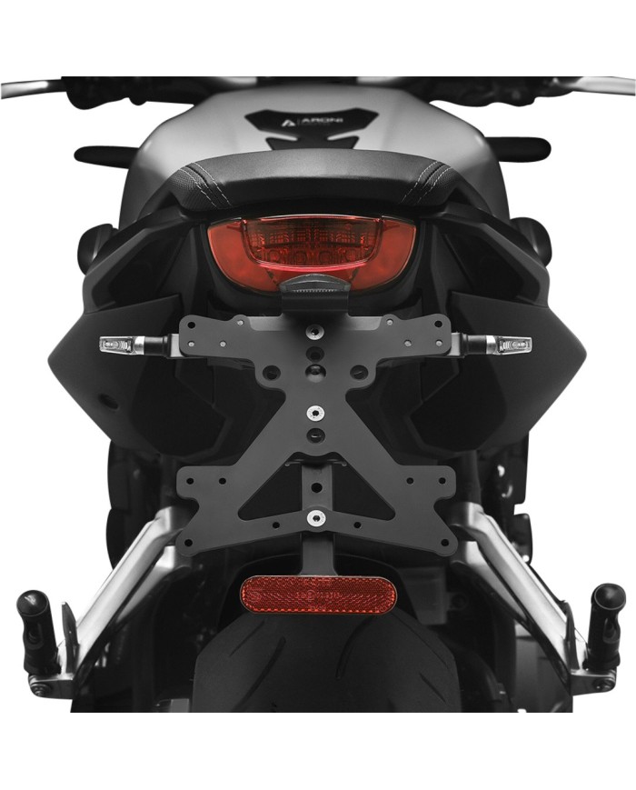 Il supporto per targa Fox in alluminio è progettato appositamente per ogni modello di moto. Ciò gli consente non solo di adattarsi perfettamente alle linee della moto, ma anche di distinguersi per la sua installazione semplice e veloce. Ogni kit contiene tutti i componenti necessari per il montaggio, senza necessità di modificare i componenti OEM. Massima funzionalità in uno spazio ridotto e rispetto delle norme di omologazione. I kit Fox comprendono un'illuminazione della targa a LED SMD, un riflettore e adattatori per indicatori di direzioneRizoma, sono regolabili e dotati di un dispositivo di bloccaggio per fissare la corretta inclinazione.