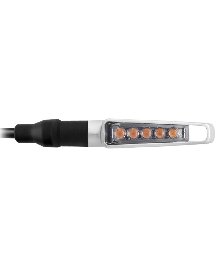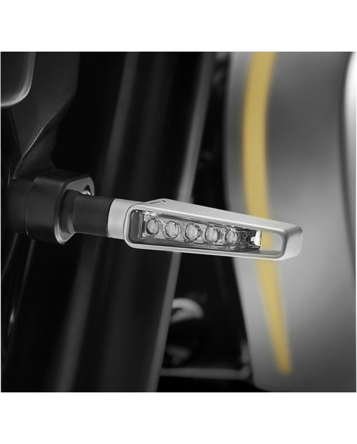 Progettato per incarnare sia la tecnologia all'avanguardia che l'estetica raffinata, Vision è più di un semplice segnalatore lampeggiante: è una dichiarazione di stile. Realizzato con precisione e attenzione ai dettagli, presenta contorni audaci e dimensioni compatte che si integrano perfettamente con le linee della moto, aggiungendo un tocco di stile al profilo. Il vero valore aggiunto, tuttavia, risiede all'interno. Dotato di 5 LED suddivisi in 5 settori, si illumina in modo fluido in un telaio in alluminio leggero e aerodinamico, garantendo una visibilità senza pari senza compromettere lo stile o le prestazioni. Alimentato da una tecnologia LED SMD avanzata, Vision non si limita a soddisfare gli standard di omologazione europei, ma li supera offrendo una luminosità incomparabile e un'attivazione sequenziale impeccabile. Realizzato in lega di alluminio di alta qualità, Vision è disponibile in due finiture anodizzate.