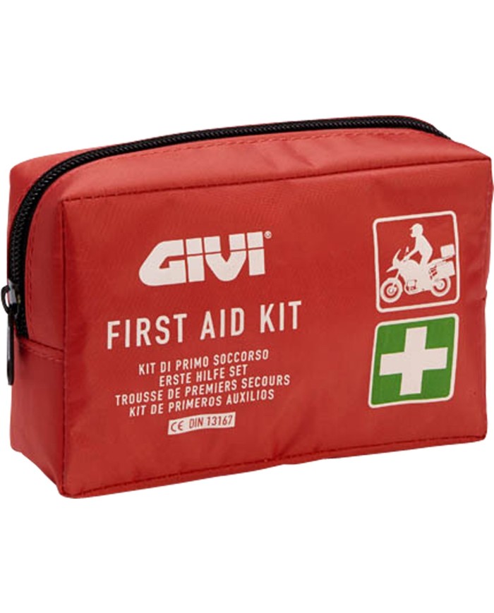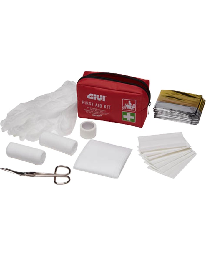 Contenuto: cerotto rapido, nastro adesivo, cerotto, foglio di medicazione per ustioni, forbici, guanti in PVC, coperta di emergenza, kit di pronto soccorso Note