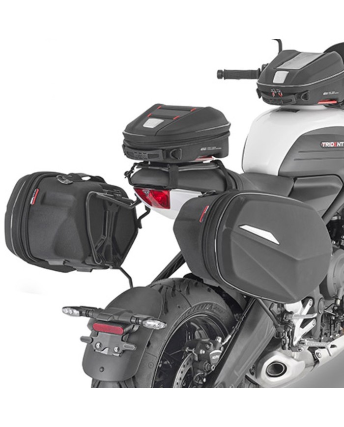 Supporti in tubo d'acciaio per borsesouples.Pour Per un montaggio sicuro e stabile delle borse universali, GIVI ha sviluppato tubi in acciaio specifici per diversi modelli di moto. Il montaggio di questi supporti garantisce un fissaggio perfetto delle borse ed evita così spiacevoli danni che potrebbero essere causati dallo scarico. Le borse del sistema Easylock possono essere fissate direttamente con una chiusura rapida.