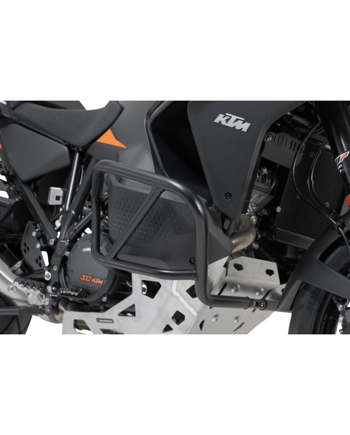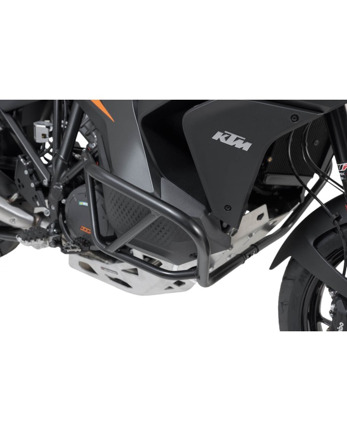 \nProgettate per la KTM 1290 Super Adventure, le barre di protezione in robusto tubolare d'acciaio da 27 mm con finitura epossidica nera offrono una protezione ottimale contro la corrosione e le intemperie. La finitura superficiale viene realizzata in un impianto ultramoderno dello stabilimentoSW-MOTECHa di Brno, nella Repubblica Ceca.