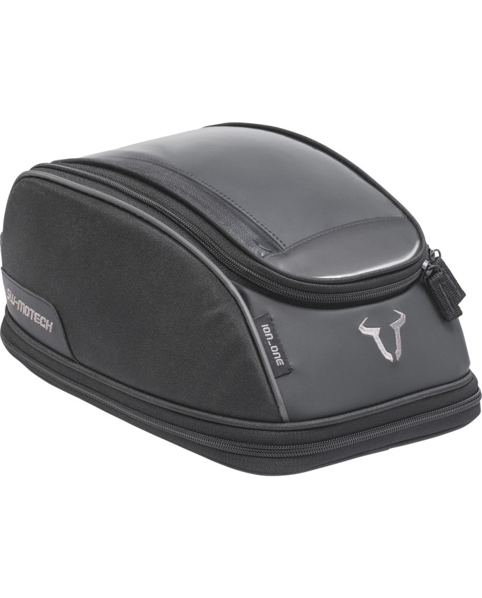 La borsa da serbatoio ION one compatta si adatta a quasi tutte le forme di serbatoio ed è perfetta per le gite brevi. Se lo spazio di 5 litri non è sufficiente, il volume può essere quasi raddoppiato grazie a una cerniera. La nuova generazione di borse da serbatoio ION convince per il suo design sobrio. Gli elementi in vinile morbido, il toro ricamato SW-MOTECH e l'elemento riflettente conferiscono alle borse da serbatoio nere un aspetto unico.