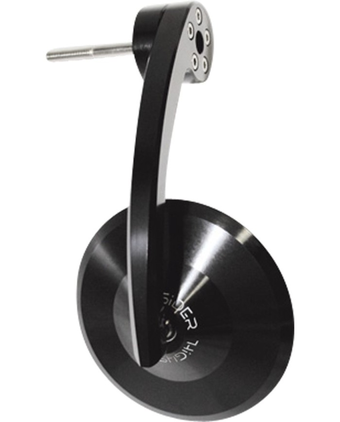 Specchietto retrovisore da manubrio con testa rotonda in alluminio anodizzato nero e manopola curva senza gomito come il modello MONTANA. Adatto per manubri con diametro interno da 12 a 22 mm, ovvero per la maggior parte dei manubri in alluminio o acciaio da 7/8" e 1". Utilizzabile sia sul lato sinistro che sul lato destro, omologato E.