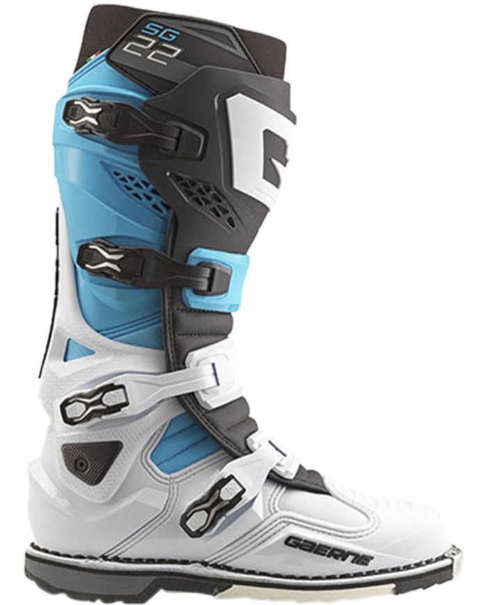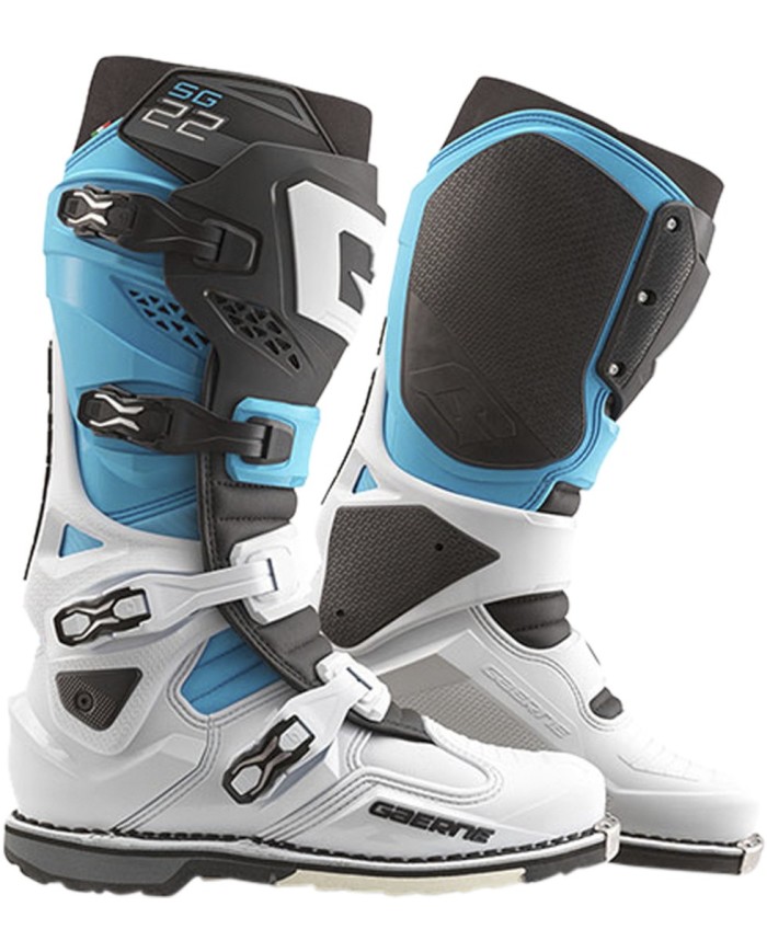 - Fibbie in alluminio super leggere; le fibbie si distinguono per una nuova verniciatura, e i miglioramenti non sono solo estetici; la leva di chiusura superiore dell'SG22 può essere regolata in tre posizioni; ciò garantisce una regolazione ottimizzata