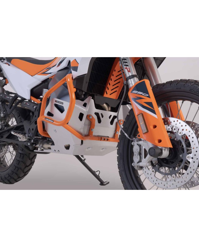 Protezione aggiuntiva del motore contro i sassi e in caso di contatto con il terreno: il paraurti motore in lega di alluminio di alta qualità dimostra tutta la sua efficacia fuori strada, ma offre anche alle moto da strada una maggiore sicurezza e un look personalizzato. I processi di produzione all'avanguardia garantiscono una perfetta aderenza dei componenti di protezione realizzati appositamente per ogni modello. Il fissaggio ai punti di montaggio del telaio conferisce ulteriore stabilità e consente un montaggio semplice.