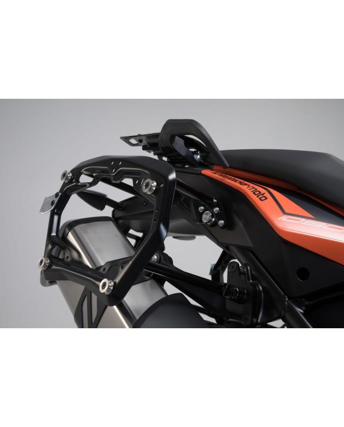 - Per il montaggio delle valigie laterali sul supporto laterale PRO sono necessari kit di adattamento specifici. Questi sono disponibili separatamente per le valigieSW-MOTECHe delle serie TRAX ADV, TRAX ION e AERO ABS, nonché SysBag WP L con piastra di adattamento. Sono disponibili separatamente anche kit di adattamento per sistemi di valigie di altri produttori.