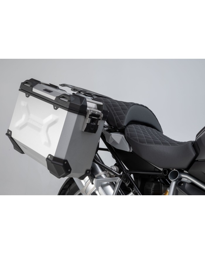 \r\nLe robuste valigie in alluminio TRAX ADV sono perfette su tutti i terreni: le stampature di design sostengono la stabilità del materiale delle pareti in alluminio saldato dello spessore di 1,5 millimetri. Un coperchio completamente rimovibile con maniglie in alluminio anodizzato e chiusure rapide facilita il carico e lo scarico delle valigie da moto, mentre il bordo laterale smussato offre un'elevata altezza da terra in curva. Con questa soluzione completa, avete tutti i componenti necessari per partire direttamente per un lungo viaggio con TRAX: due valigie laterali TRAX ADV impermeabili, due supporti laterali rimovibiliSW-MOTECH, un kit di adattamento, un set di serrature, un limitatore di apertura e una protezione antifurto a un prezzo complessivo interessante. I supporti specifici per il modello e le dimensioni delle valigie sono perfettamente adattati alla geometria posteriore e al sistema di scarico della moto.