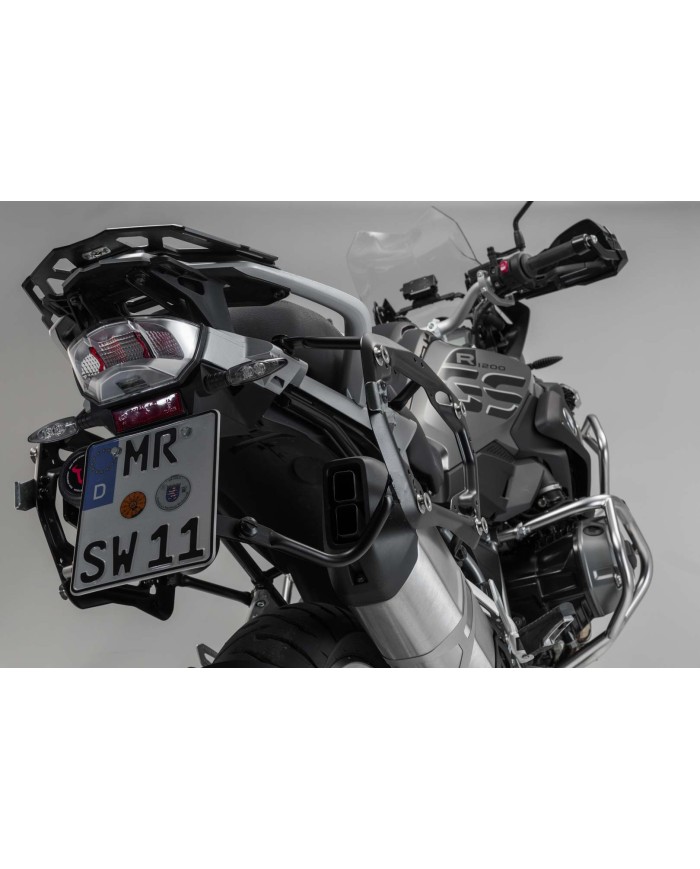 - Per il montaggio delle valigie laterali sul supporto laterale PRO sono necessari kit di adattamento specifici. Questi sono disponibili separatamente per le valigieSW-MOTECHe delle serie TRAX ADV, TRAX ION e AERO ABS, nonché SysBag WP L con piastra di adattamento. Sono disponibili separatamente anche kit di adattamento per sistemi di valigie di altri produttori.