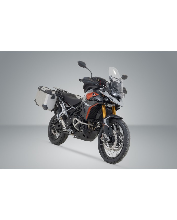 \r\nLe robuste valigie in alluminio TRAX ADV sono perfette su tutti i terreni: le stampature di design sostengono la stabilità del materiale delle pareti in alluminio saldato dello spessore di 1,5 millimetri. Un coperchio completamente rimovibile con maniglie in alluminio anodizzato e chiusure rapide facilita il carico e lo scarico delle valigie della moto, mentre il bordo laterale smussato offre un'elevata altezza da terra in curva. Con questa soluzione completa, avete tutti i componenti necessari per partire direttamente per un lungo viaggio con TRAX: due valigie laterali TRAX ADV impermeabili, due supporti laterali rimovibiliSW-MOTECH, un kit di adattamento, un set di serrature, un limitatore di apertura e una protezione antifurto ad un prezzo complessivo interessante. I supporti specifici per il modello e le dimensioni delle valigie sono perfettamente adattati alla geometria posteriore e al sistema di scarico della moto.