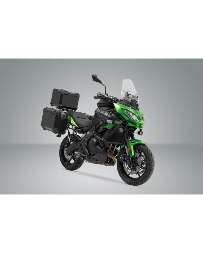 \r\nQuesta soluzione completa comprende tutti gli articoli necessari per il montaggio di un bauletto: bauletto TRAX ADV, portapacchi specifico per il modello, piastra di adattamento e set di serrature TRAX. E il prossimo viaggio può iniziare... perché durante lo sviluppo del TRAX ADV, la stabilità e la tenuta alla polvere e all'acqua erano importanti tanto quanto la facilità d'uso. Che si tratti di un'avventura fuoristrada, di un viaggio lontano o di un breve tragitto, il bauletto in alluminio con uno spessore della parete di 1,5 millimetri convince in ogni sfida.
