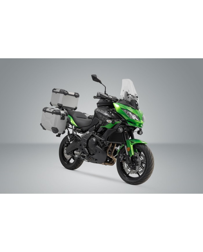 \r\nQuesta soluzione completa comprende tutti gli articoli necessari per il montaggio di un bauletto: bauletto TRAX ADV, portapacchi specifico per il modello, piastra di adattamento e set di serrature TRAX. E il prossimo viaggio può iniziare... perché durante lo sviluppo del TRAX ADV, la stabilità e la tenuta alla polvere e all'acqua erano importanti tanto quanto la facilità d'uso. Che si tratti di un'avventura fuoristrada, di un viaggio lontano o di un breve tragitto, il bauletto in alluminio con uno spessore delle pareti di 1,5 millimetri convince in ogni situazione.