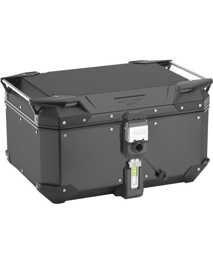 Interamente realizzato in alluminio, il nuovo bauletto OBKEV58A presenta innovativi angoli superiori e inferiori con occhielli che eliminano e integrano le fibbie delle cinghie per rendere più sicuro il fissaggio alle maniglie tubolari.