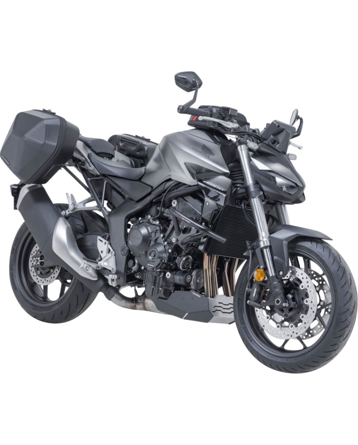 Lo sviluppo specifico per il modello garantisce la migliore adattabilità e consente il montaggio su uno o entrambi i lati. Compatibile con le borse laterali Legend Gear LC1/LC2, le valigie laterali URBAN ABS, le borse SysBag con piastra di adattamento, il fissaggio laterale universale, la piastra con numero di gara. Il kit di adattamento è già incluso nella fornitura.Dettagli
