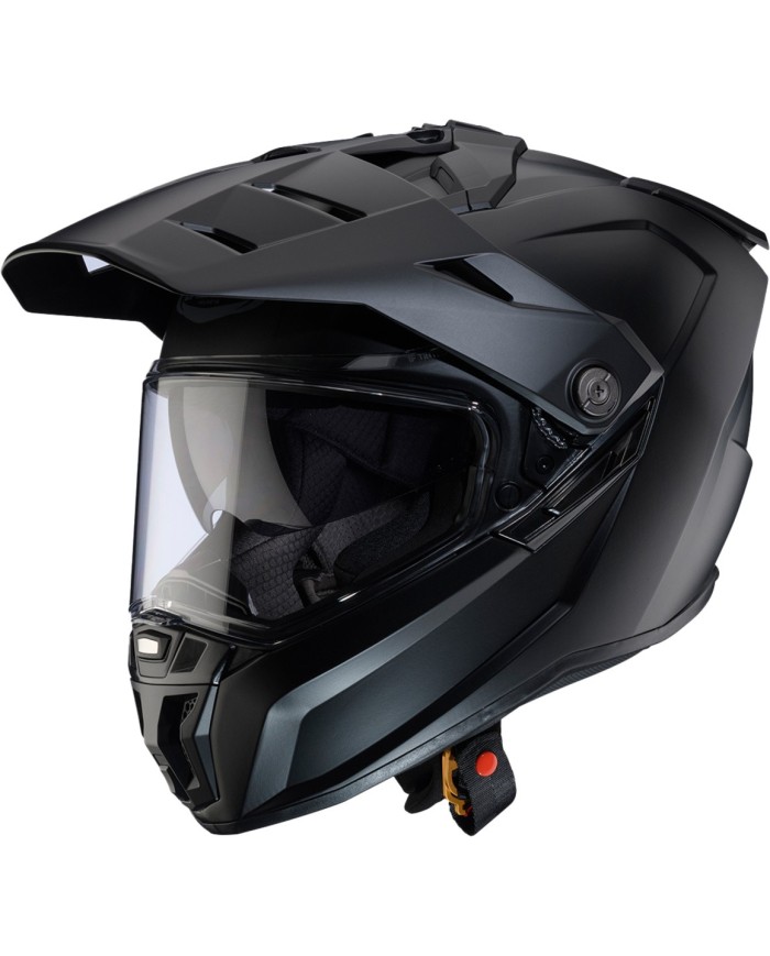 Il casco è compatibile con gli occhiali da motocross e consente l'installazione di un tubo di idratazione nella mentoniera. Sono inclusi uno schermo esterno trasparente antigraffio e una lente antiappannamento regolabile Pinlock Max Vision 70. La visiera parasole integrata DVT è facile da maneggiare anche con i guanti. La fodera interna ipoallergenica e traspirante è rimovibile e lavabile, mentre le guance sono ergonomiche per accogliere gli occhiali.